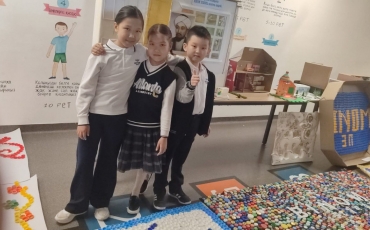 Маленькие шаги к чистому будущему. Недавно в школе Binom прошёл классный час, посвящённый теме бережного отношения к пластиковым отходам. Ученики 3 класса собрали крышки от бутылок и банок — и превратили их в настоящий ковёр и яркие поделки.