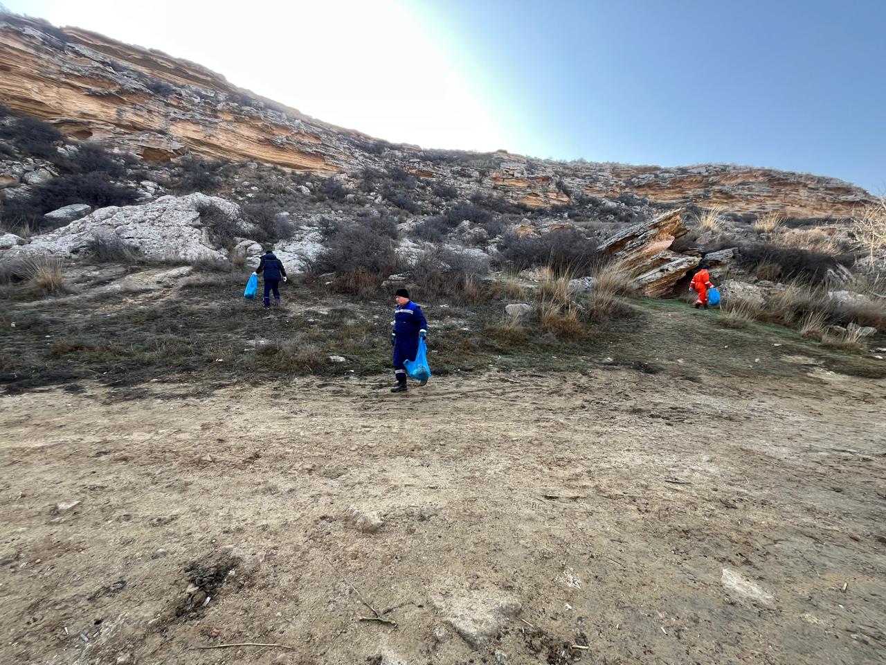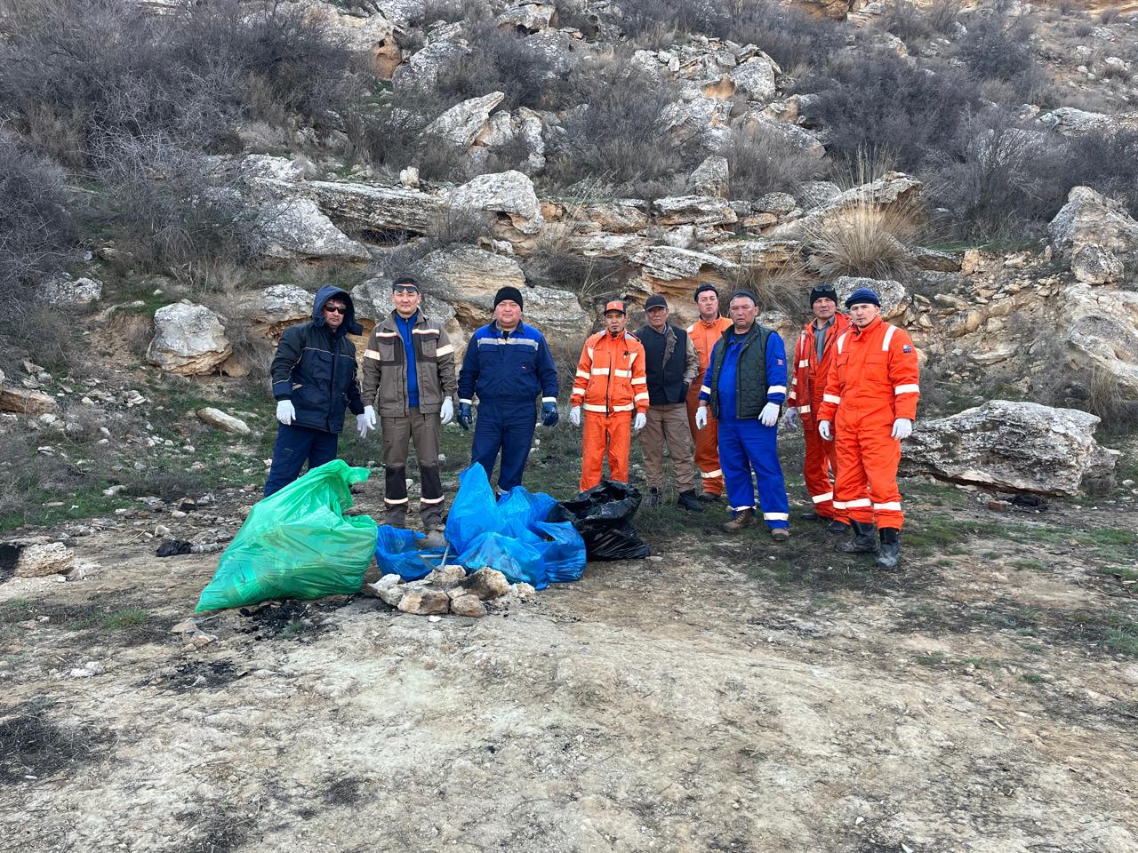 The clean-up was aimed at carrying out sanitary cleaning works in the Tamshaly gorge, a tourist natural complex of the Tupkaragan District. During the event, employees of the Koshanai WMF collected litter and improved the condition of the designated area.