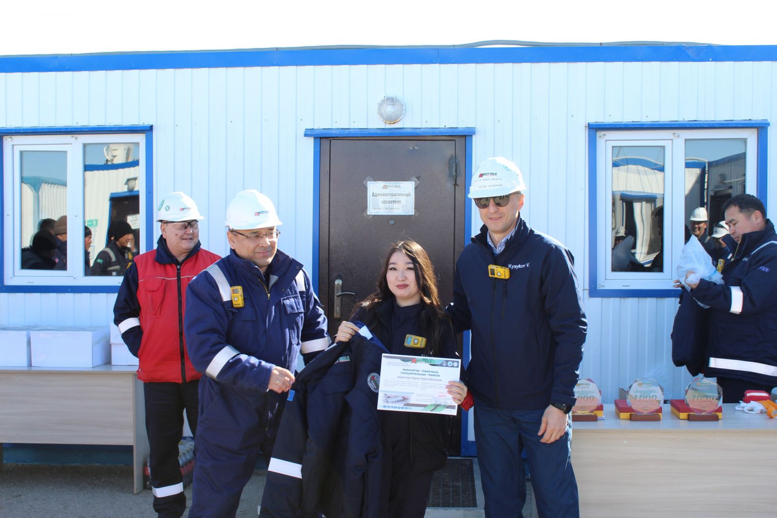 Алғыс хаттармен, марапаттармен және естелік сыйлықтармен Жоба қызметкерлерінің жетістіктері мен қосқан үлесі атап өтілді. Олардың күнделікті тәртібі, мұқияттылығы және еңбек қауіпсіздігі талаптарын сақтау жұмыстың тұрақты әрі қауіпсіз орындалуын қамтамасыз етті.