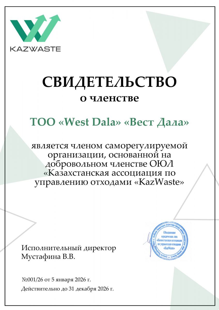 Компанияда ISO 9001:2015, ISO 14001:2015, ISO 45001:2018 халықаралық стандарттарына сәйкес кіріктірілген менеджмент жүйесі әзірленіп - енгізілген.