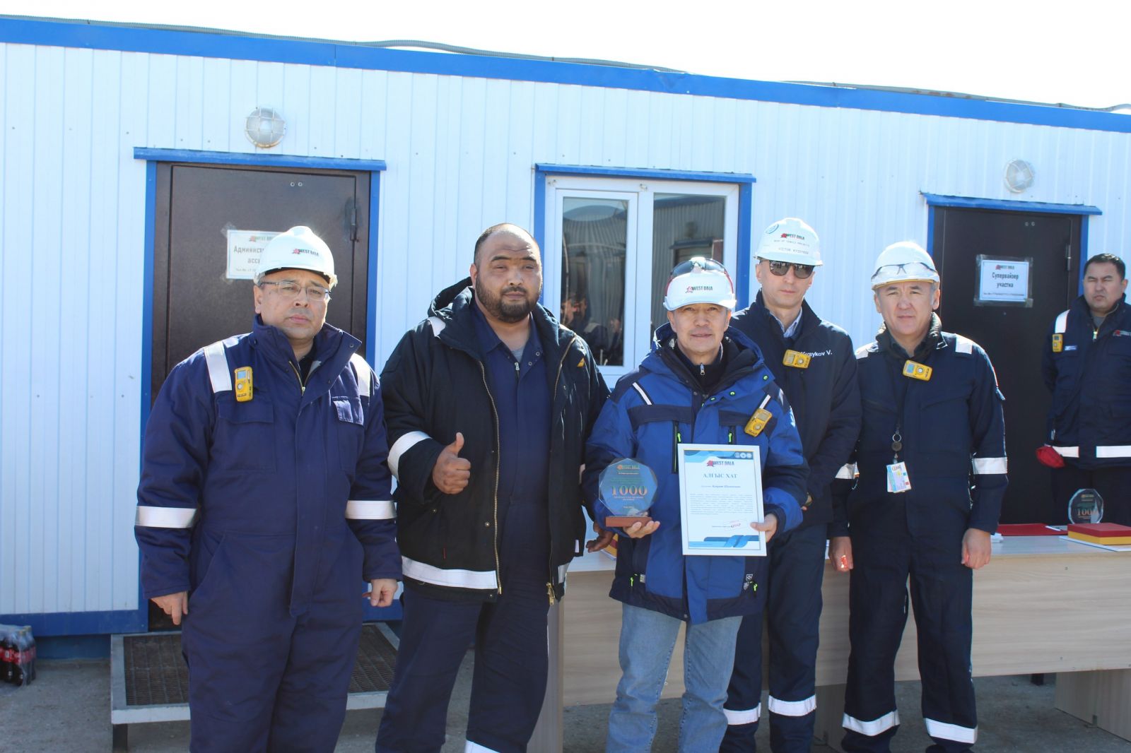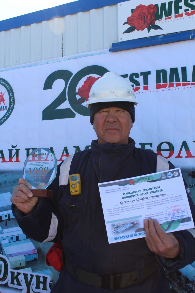 2026 жылғы 7 ақпанда қол жеткізілген маңызды көрсеткіш — 1000 күн бойы өндірістік жарақаттарсыз және еңбекке қабілеттілікті жоғалту жағдайларынсыз жұмыс істеу құрметіне, 13 наурыз күні West Dala компаниясының басшылығы Теңіз кен орнындағы мұнайшламын бөлу жобасының қызметкерлерін құттықтады.